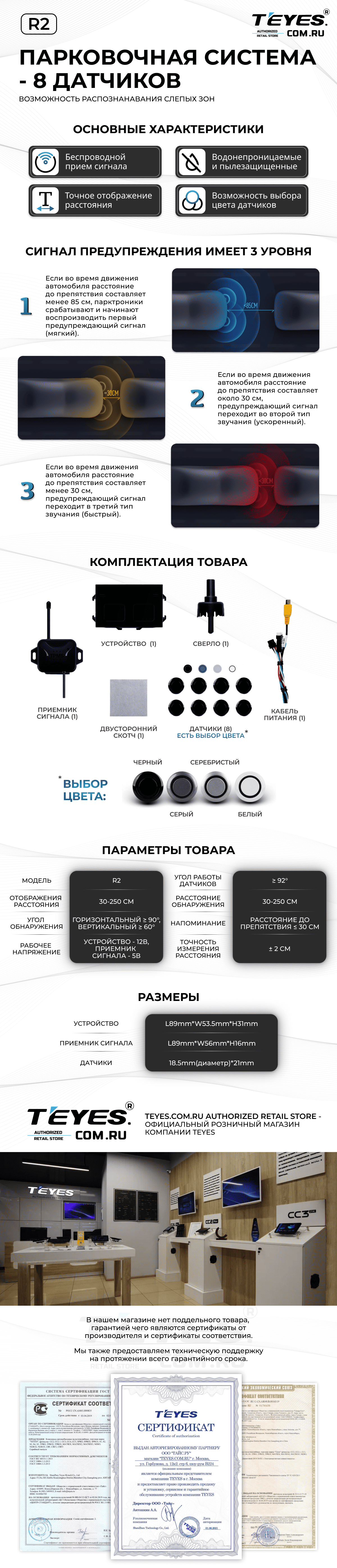 Передние и задние парктроники Teyes R2 для CC4 Pro / CC4 / CC4L / CC3 2K / CC3 / CC3L / CC2 Plus / SPRO Plus / TPRO2 / LUX ONE (Белые) 8-датчиков - купить всего за 19 900 руб. в интернет-магазине в Белгороде Teyes.com.ru. ✓ Самый лучший выбор мультимедиа ✓ Лучшая замена штатному ГУ ✓ Тел. +7 (800) 775-31-74