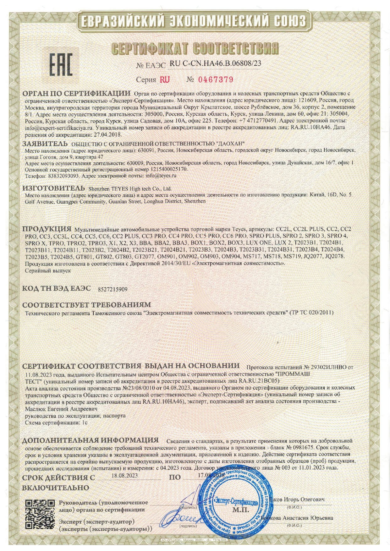 Оказываем услуги по установке продукции Teyes с гарантией 1 год. Сертификаты на работы с гарант. авто в наличии.