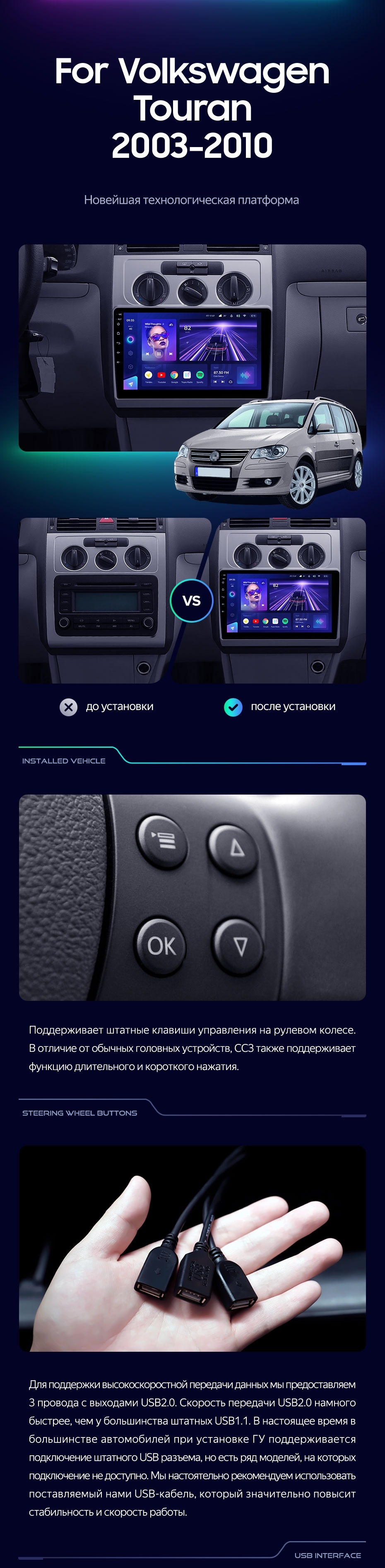 Штатная магнитола Teyes CC3 4/32 Volkswagen Touran 1 (2003-2010) F2 - купить всего за 33 800 руб. в интернет-магазине в Белгороде Teyes.com.ru. ✓ Самый лучший выбор мультимедиа ✓ Лучшая замена штатному ГУ ✓ Тел. +7 (800) 775-31-74
