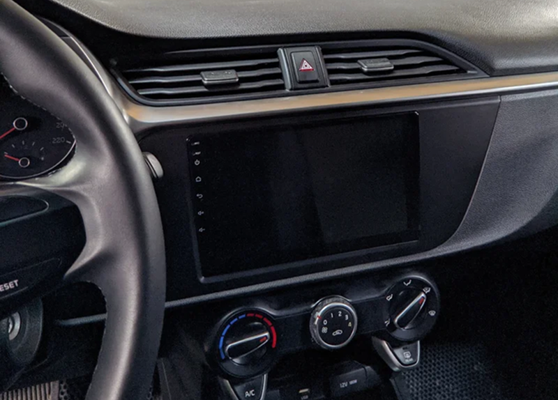 Защитное стекло 2,5D имеет слегка скругленные грани. Эта особенность делает его практически незаметным в районе краев экрана магнитолы, где он ограничен рамками корпуса.