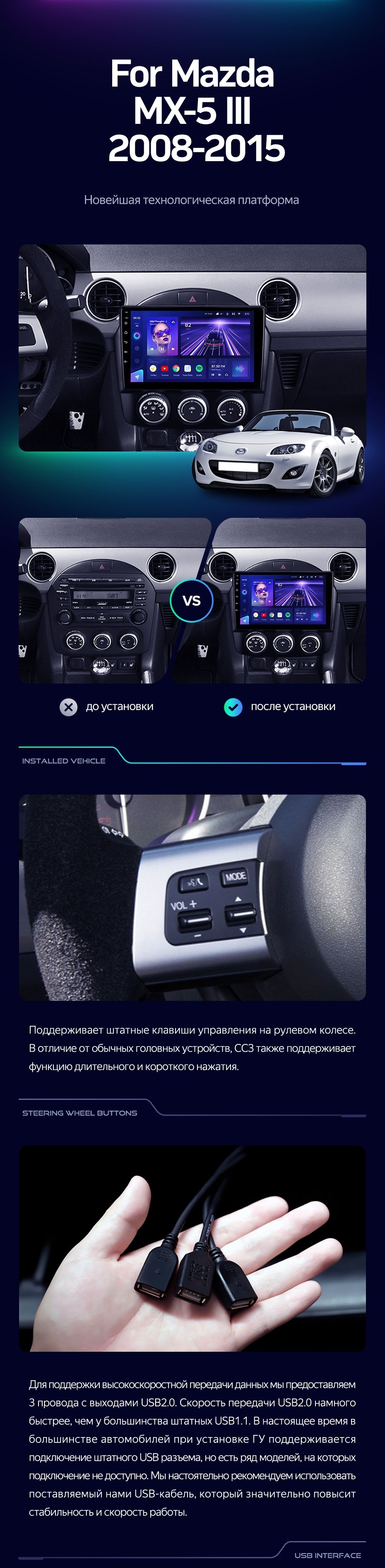 Штатная магнитола Teyes CC3L 4/32 Mazda MX-5 (2008-2015) - купить всего за 30 200 руб. в интернет-магазине в Белгороде Teyes.com.ru. ✓ Самый лучший выбор мультимедиа ✓ Лучшая замена штатному ГУ ✓ Тел. +7 (800) 775-31-74
