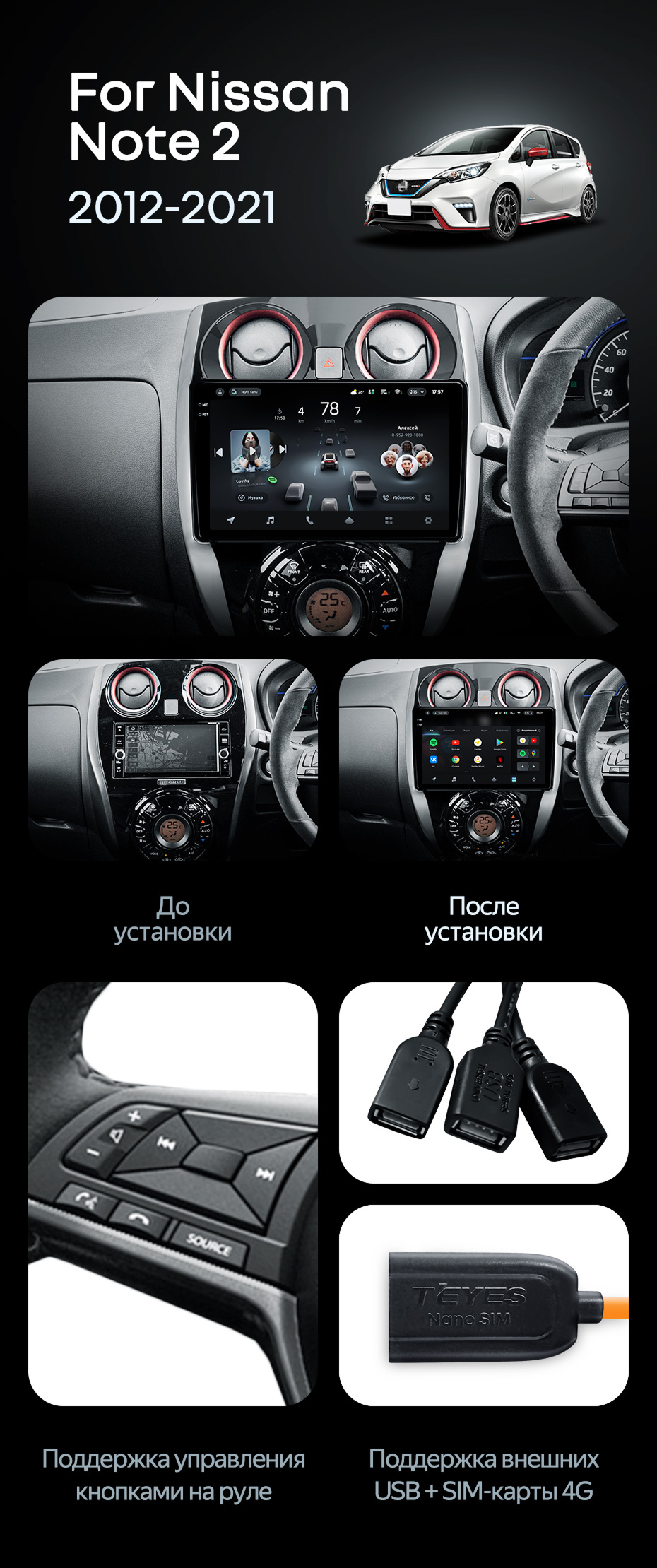 Штатная магнитола Teyes CC4 8/128 Nissan Note 2 E12 (2012-2021) - купить всего за 52 800 руб. в интернет-магазине в Белгороде Teyes.com.ru. ✓ Самый лучший выбор мультимедиа ✓ Лучшая замена штатному ГУ ✓ Тел. +7 (800) 775-31-74