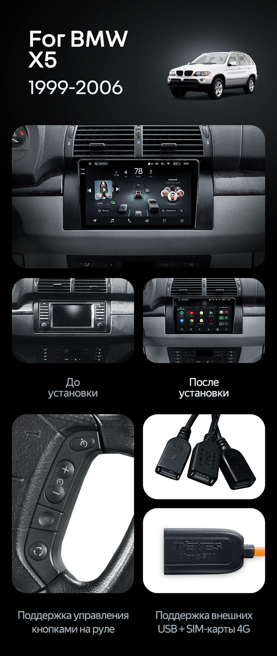 Штатная магнитола Teyes CC4 Pro 12/256 BMW X5 E39 E53 (1999-2006) - купить всего за 70 500 руб. в интернет-магазине в Белгороде Teyes.com.ru. ✓ Самый лучший выбор мультимедиа ✓ Лучшая замена штатному ГУ ✓ Тел. +7 (800) 775-31-74