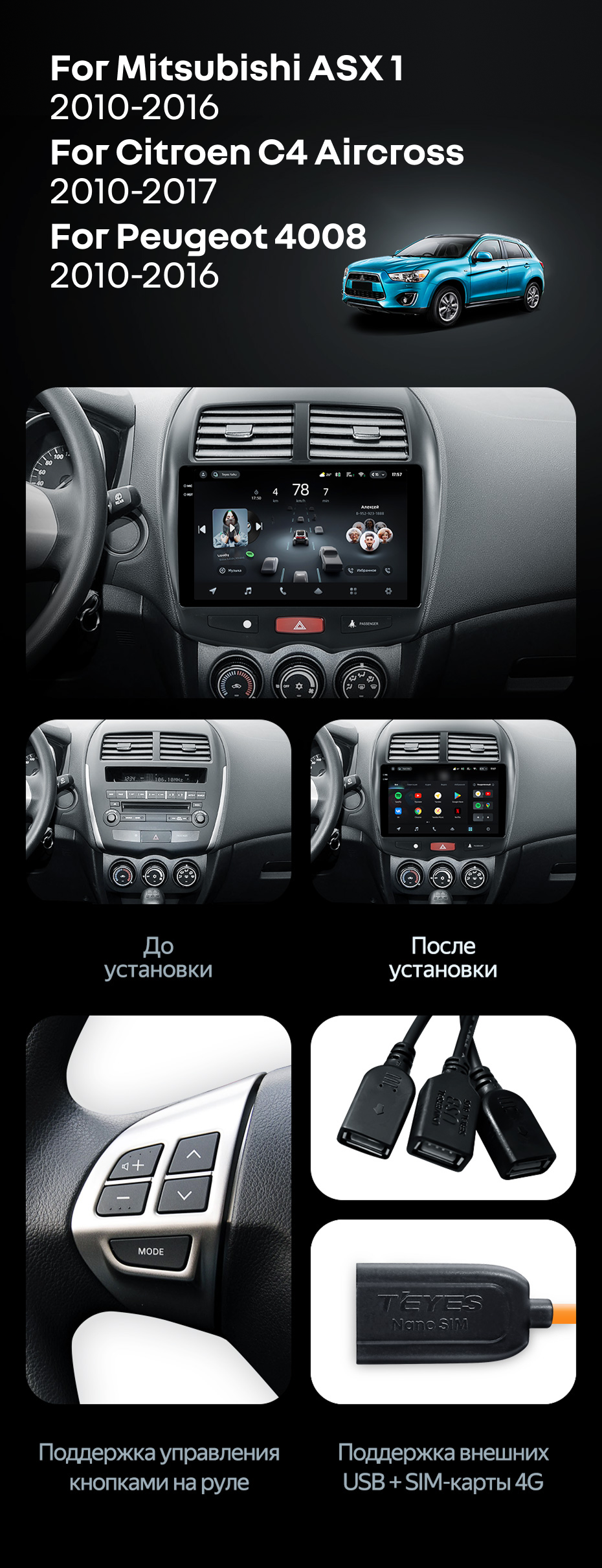 Штатная магнитола Teyes CC4 Pro 12/256 Citroen C4 Aircross (2010-2017) Тип-A - купить всего за 68 710 руб. в интернет-магазине в Белгороде Teyes.com.ru. ✓ Самый лучший выбор мультимедиа ✓ Лучшая замена штатному ГУ ✓ Тел. +7 (800) 775-31-74