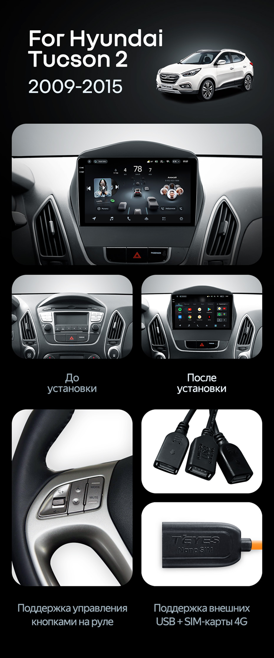 Штатная магнитола Teyes CC4 Pro 12/256 Hyundai ix35 (2009-2015) (Tucson 2) Тип-AB - купить всего за 67 970 руб. в интернет-магазине в Белгороде Teyes.com.ru. ✓ Самый лучший выбор мультимедиа ✓ Лучшая замена штатному ГУ ✓ Тел. +7 (800) 775-31-74