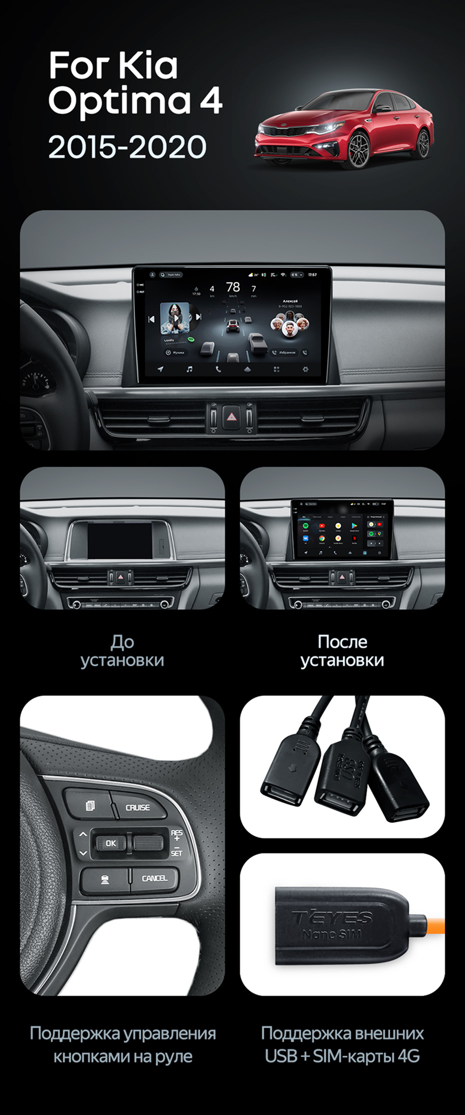 Штатная магнитола Teyes CC4 Pro 12/256 Kia Optima 4 JF (2015-2020) Тип-B - купить всего за 70 160 руб. в интернет-магазине в Белгороде Teyes.com.ru. ✓ Самый лучший выбор мультимедиа ✓ Лучшая замена штатному ГУ ✓ Тел. +7 (800) 775-31-74