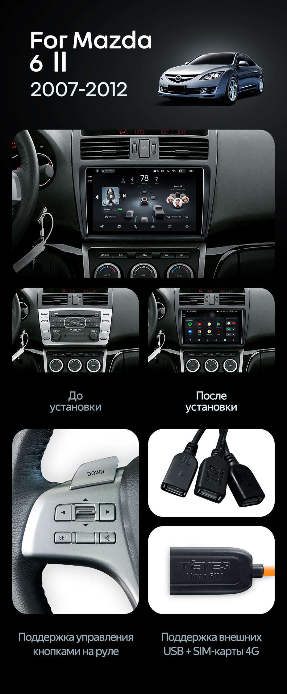Штатная магнитола Teyes CC4 Pro 12/256 Mazda 6 2 GH (2007-2012) - купить всего за 69 390 руб. в интернет-магазине в Белгороде Teyes.com.ru. ✓ Самый лучший выбор мультимедиа ✓ Лучшая замена штатному ГУ ✓ Тел. +7 (800) 775-31-74