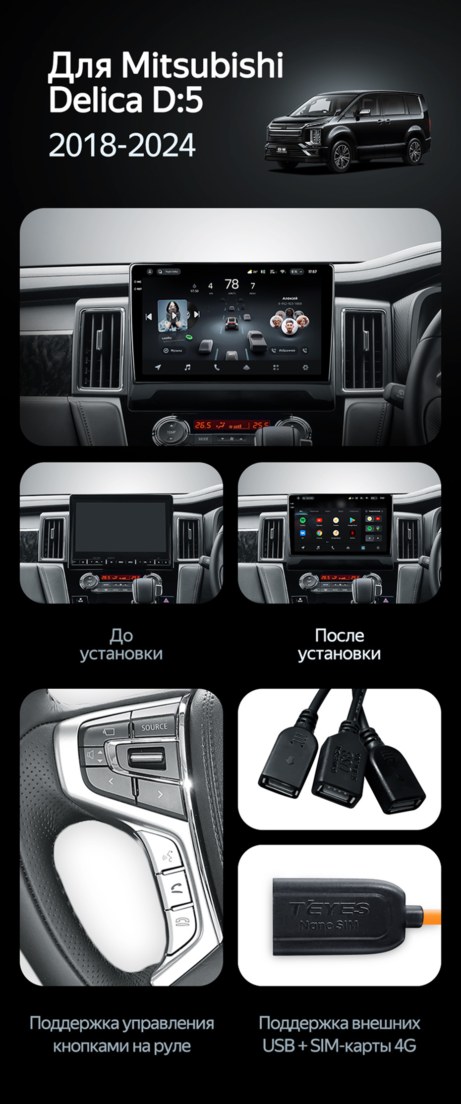 Штатная магнитола Teyes CC4 Pro 12/256 Mitsubishi Delica D:5 (2018-2024) - купить всего за 69 670 руб. в интернет-магазине в Белгороде Teyes.com.ru. ✓ Самый лучший выбор мультимедиа ✓ Лучшая замена штатному ГУ ✓ Тел. +7 (800) 775-31-74