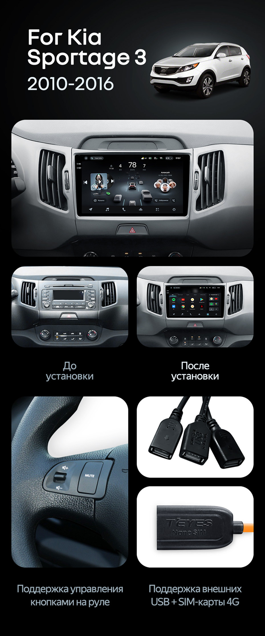 Штатная магнитола Teyes CC4 Pro 8/128 Kia Sportage 3 SL (2010-2016) Тип-A - купить всего за 58 070 руб. в интернет-магазине в Белгороде Teyes.com.ru. ✓ Самый лучший выбор мультимедиа ✓ Лучшая замена штатному ГУ ✓ Тел. +7 (800) 775-31-74