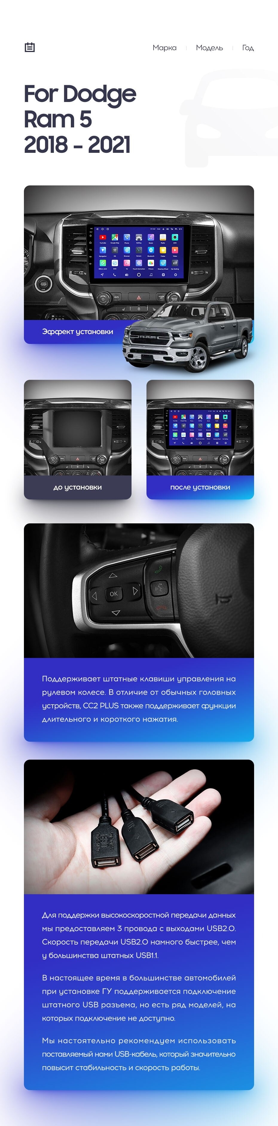 Полный комплект установки магнитолы Teyes с рамкой и проводкой можно выбрать в каталоге штатных магнитол Dodge Ram 4 IV DJ DS (2018-2021).