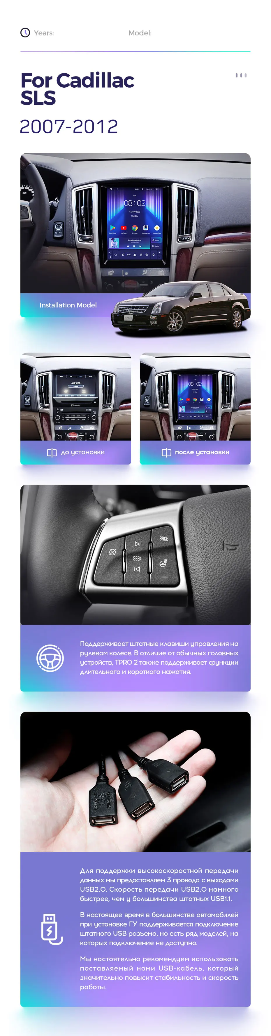 Готовый установочный комплект для магнитолы Cadillac Seville SLS (2007-2012) 9,7 дюймов в штатное место, включает переходную рамку и проводку.